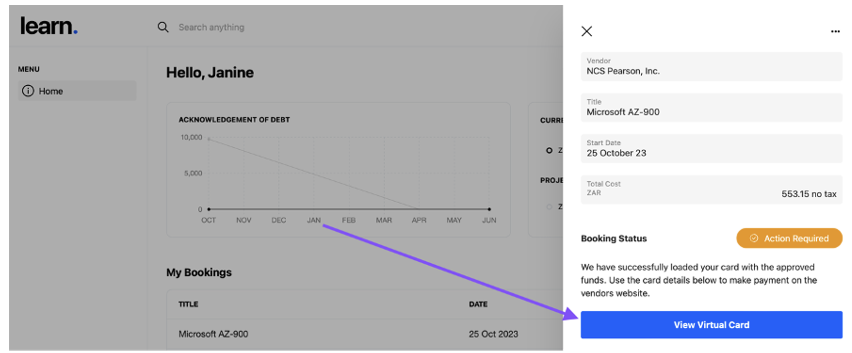 Once you have signed the AOD for your booking you will be issued with a virtual card to make the payment directly to the vendor.