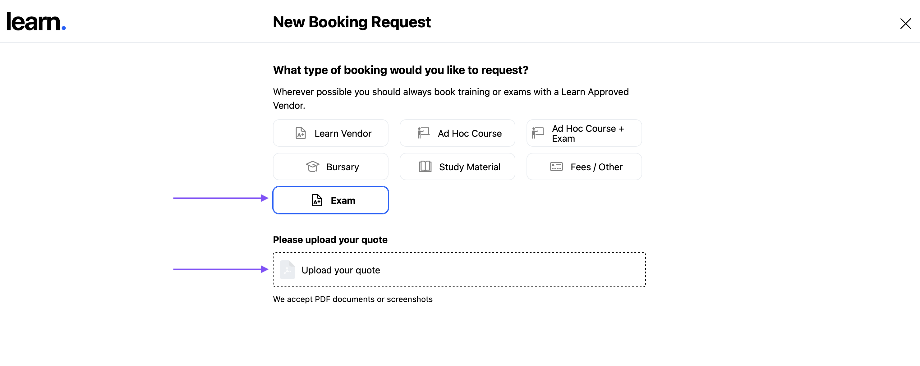 You will need to upload a quote when you submit your request on Learn so make sure you have this ready. L&D will compare the details of your request to the quote so make sure it is accurate and if there are any discounts, extra fees or vat charges, these must be reflected on the quote.